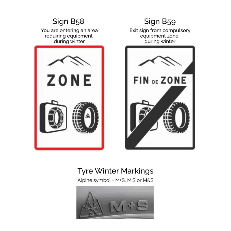 Anyone travelling through the designated areas shown on the map between 1 November and 31 March will be required to fit four approved winter tyres or carry at least two snow chains or socks in the vehicle.