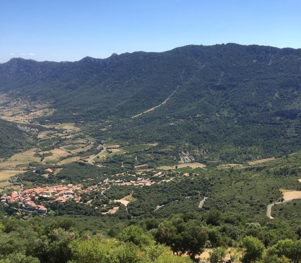 Somewhere down there is our motorhome! We walked up to the amazing castle of Peyrepertuse from our wild camping spot (just past the village of Duilhac) and along part of the ancient Cathar Trail. Â
